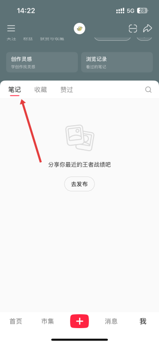 4、發布筆記后,進入我的頁面,筆記板塊,可查看自己發布的筆記,也能查看收藏、贊過的內容。