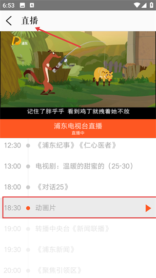 2、電視直播頁面呈現浦東電視臺的節目排期,實時播放當前節目,方便用戶收看區域電視內容。