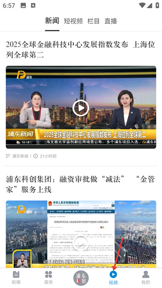 4、視頻頁面分類呈現新聞、短視頻等內容,展示浦東相關資訊視頻,是觀看區域視頻內容的關鍵頁面。