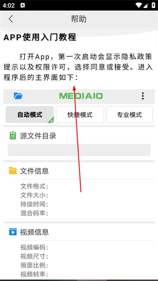 3、在幫助頁面選擇APP使用入門教程條目,點擊進入詳情頁,查看軟件啟動及主界面相關的使用說明,了解基礎操作流程。
