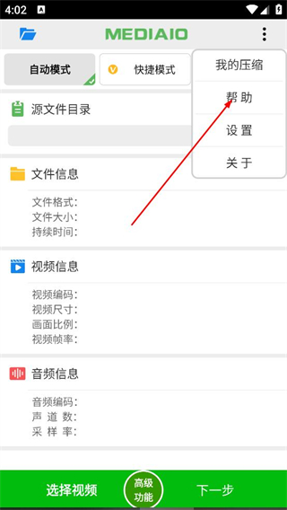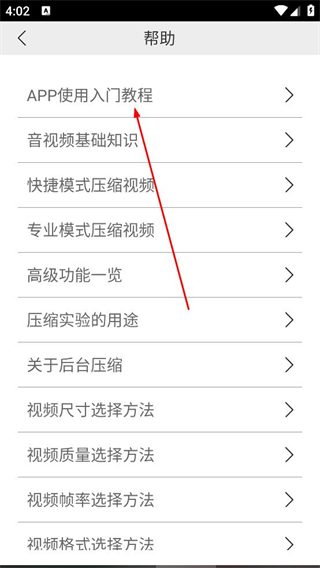 2、在展開的菜單中選擇幫助選項,進入幫助頁面,瀏覽各類教程條目,比如APP使用入門教程音視頻基礎知識等內容。