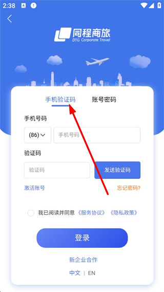 3、登錄界面支持手機驗證碼或賬號密碼登錄,選擇手機驗證碼方式,輸入手機號并獲取驗證碼,即可完成登錄操作。