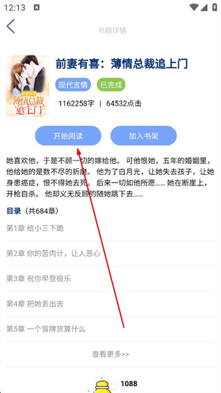 3、點擊開始閱讀按鈕進入書籍閱讀界面,可查看章節列表,選擇對應章節開始閱讀內容,同時能看到書籍的簡介信息了解故事背景。