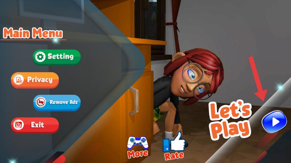 1、進入游戲主菜單,有Setting,Privacy等選項,點擊藍色三角形,就能開啟躲貓貓的游戲挑戰,準備選擇游戲模式。