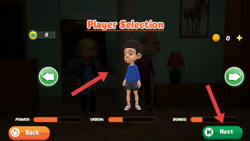 4、在玩家選擇界面,有不同的角色,選好角色后,點擊Next,就可以進入游戲,開始躲貓貓的冒險。