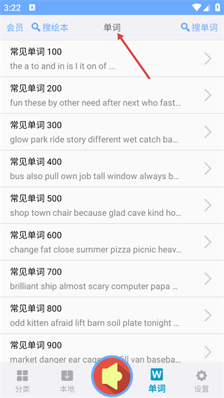 4、單詞頁面,按數量劃分常見單詞列表,從100到900級,覆蓋不同難度詞匯,助力英語詞匯積累與學習。