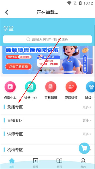 4、在學堂頁面瀏覽新師傅售后預防講解等課程,可通過搜索框查找課程,選擇點播中心等板塊學習對應內容。