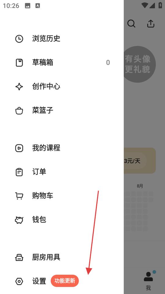 1、側邊欄菜單含瀏覽歷史、草稿箱等,創作中心可創作內容,我的課程、訂單等方便用戶管理學習與消費相關事務。