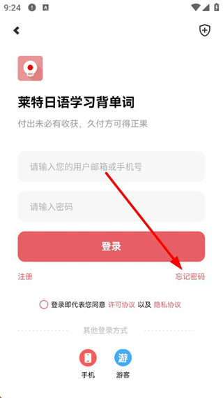 3、選擇密碼登錄后需輸入用戶郵箱或手機號以及密碼,若忘記密碼可點擊對應選項,也能選擇注冊新賬號,同樣需勾選協議。