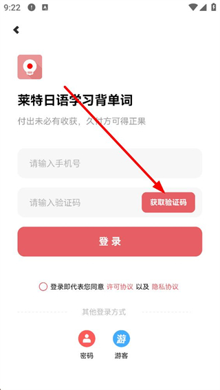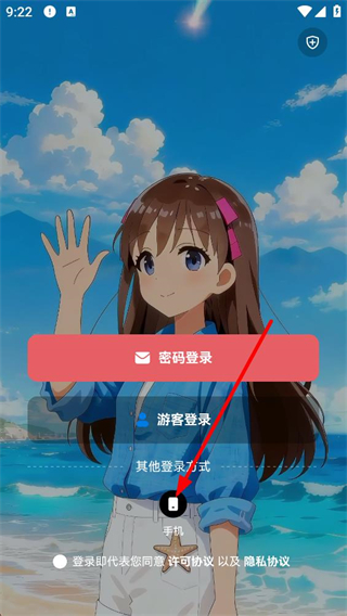1、進入界面后可選擇密碼登錄游客登錄或其他登錄方式中的手機登錄,登錄前需勾選同意許可協議以及隱私協議。