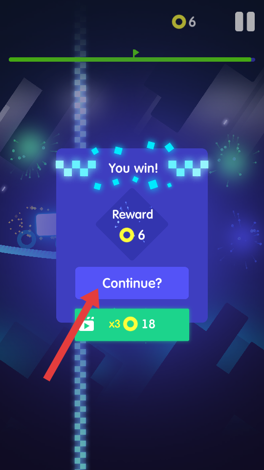 3、成功完成關卡后,會顯示你贏了的勝利界面,獲得相應的獎勵,此時可點擊繼續繼續下一關。