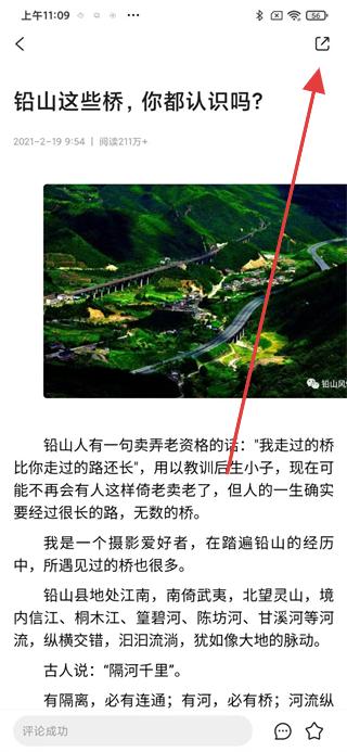 4、完成文章分享,可復制鏈接手動分享,還能返回新聞頁面繼續瀏覽其他資訊內容。