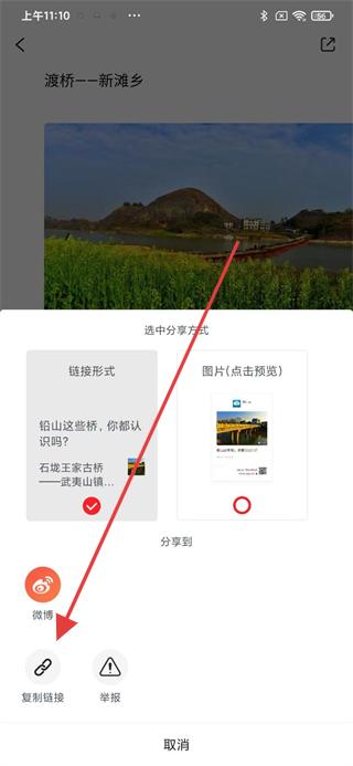 3、在文章詳情頁閱讀內容后點擊分享按鈕,彈出分享選項,可選擇鏈接形式或圖片形式,準備將文章分享至其他平臺或渠道。
