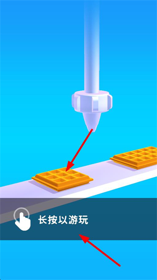 1、長按界面提示的區域,操控裱花工具移動,對準華夫餅的區域,準備進行奶油裝飾的操作。