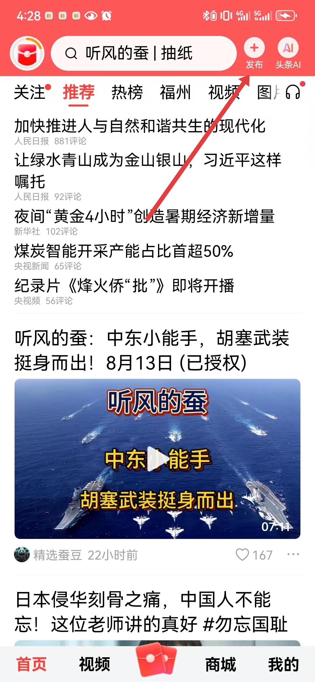 1、打開App進入首頁界面,在頁面右上方找到發布按鈕,即一個紅色且帶有加號的按鈕,點擊它即可進入作品編輯發布流程,開始創作和分享你的內容。
