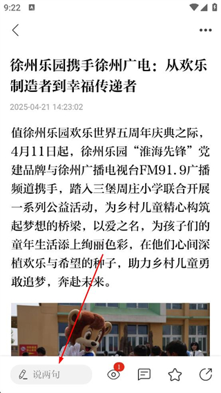 4、進入資訊詳情頁后閱讀文章內容了解公益活動信息,還能在評論輸入框填寫內容,點擊發送參與互動,也可使用分享功能傳播資訊。