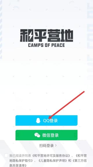 1、進入和平營地登錄頁面,可選擇QQ登錄或微信登錄,勾選同意相關協議后,即可進入營地,開啟游戲輔助之旅。
