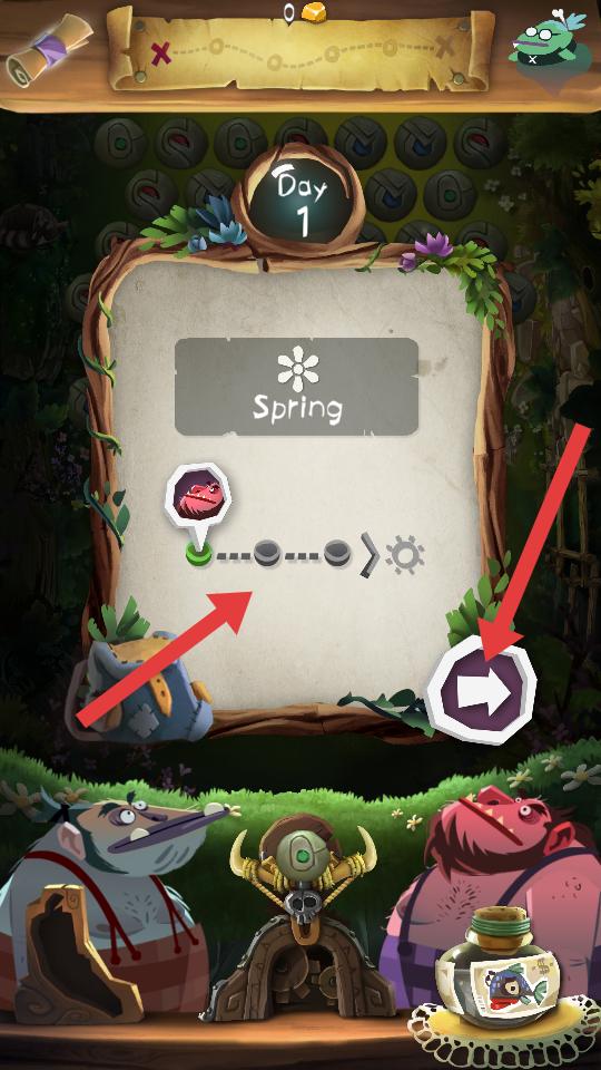 2、進入游戲,顯示Day1,可看到進度等信息,點擊箭頭按鈕,開始當天的泡泡挑戰任務。