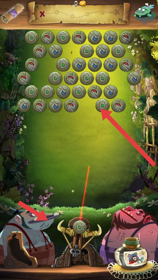 3、游戲中操控裝置發射泡泡,瞄準上方的泡泡,讓相同的泡泡消除,過程中留意畫面中的元素,順利進行消除。