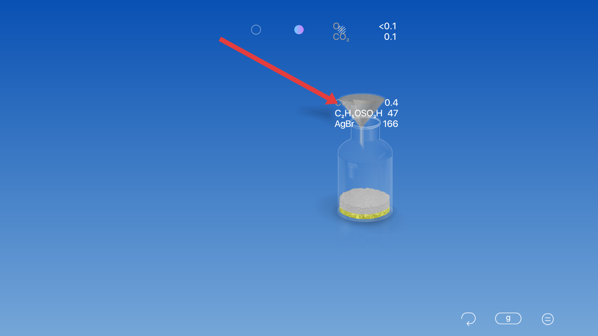 4、選擇所需試劑后,可通過漏斗將試劑添加到容器中,如將CHOSOH和AgBr添加到同一容器中,完成試劑混合操作。