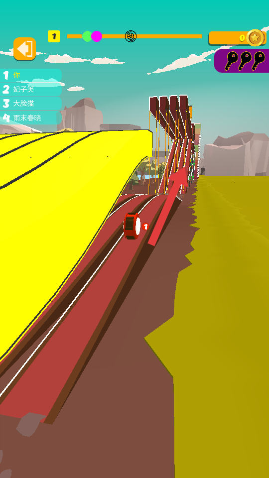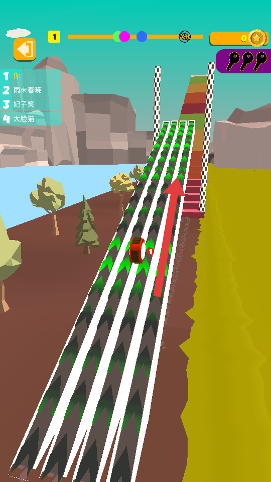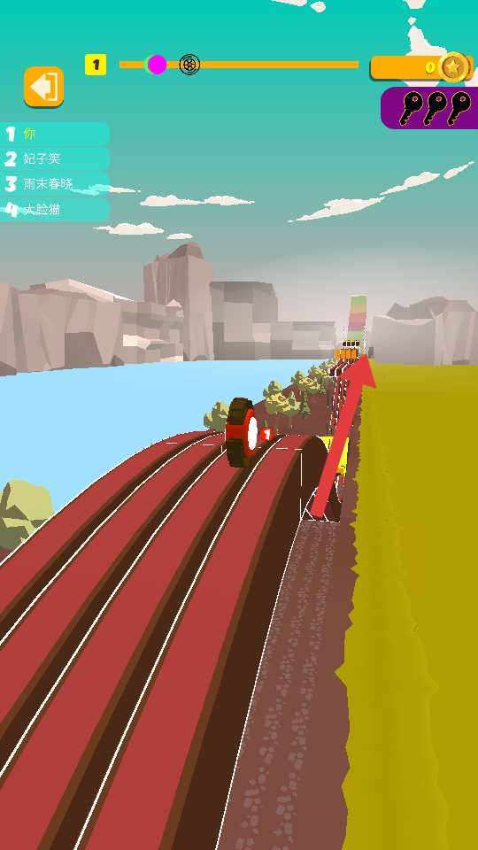 2、在賽道上,車輪與其他對手競爭,沿著紅色軌道行駛,努力保持領先位置,爭取在排名中處于優勢。