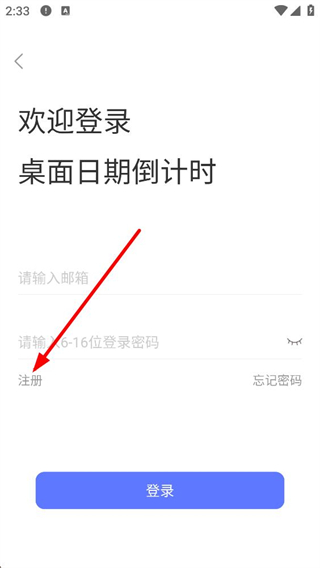 3、選擇郵箱登錄后進入對應界面,需輸入郵箱和登錄密碼,也可點擊注冊按鈕進行賬號注冊,完成后即可登錄使用功能。