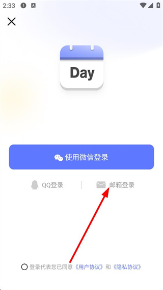 2、登錄選擇界面,提供微信、QQ、郵箱等登錄方式,需先勾選同意相關協議,選擇對應方式即可進行賬號登錄操作。