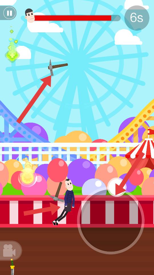 3、游戲中操控角色投擲飛刀,注意時機和角度,擊中目標,同時角色可移動,躲避危險,爭取更好的表現。