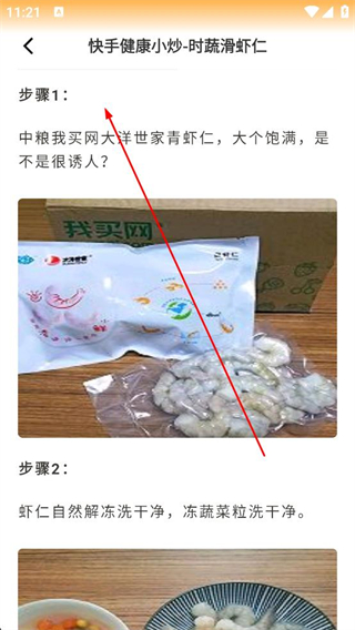 4、在菜譜詳情頁面瀏覽步驟1的內容,查看對應的食材展示圖片,了解該步驟的操作要點,為烹飪做準備。