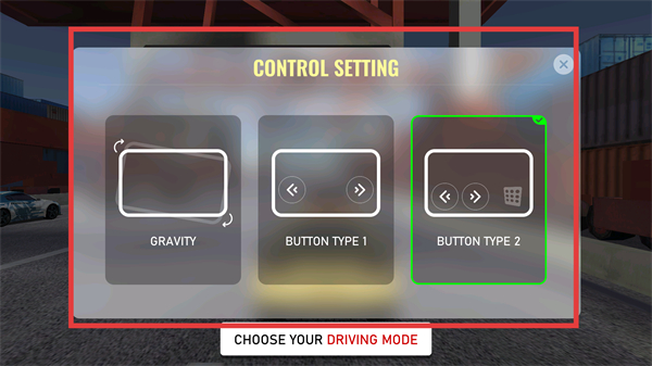 2、彈出控制設置界面,有重力感應、兩種按鍵操作模式可選,玩家可根據喜好選,比如選按鍵模式2。