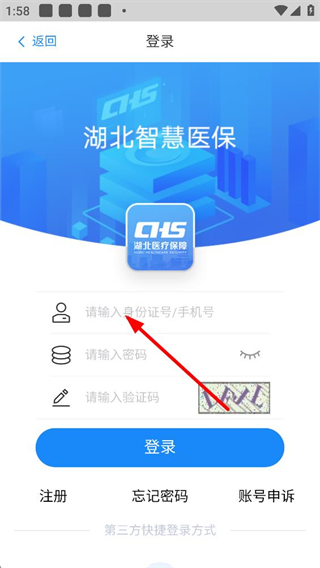 3、登錄時輸入身份證號、手機號、密碼和驗證碼,點擊登錄即可進入系統,也可選擇注冊、忘記密碼、賬號申訴等操作,還有第三方快捷登錄方式。
