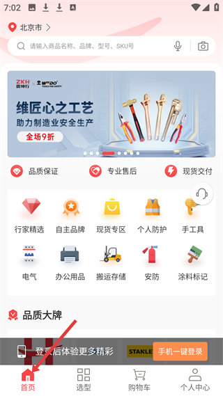 1、首頁有維匠心之工藝工具促銷banner,提供品質保證等服務,還有行家精選等分類入口,可搜索或瀏覽工業品。