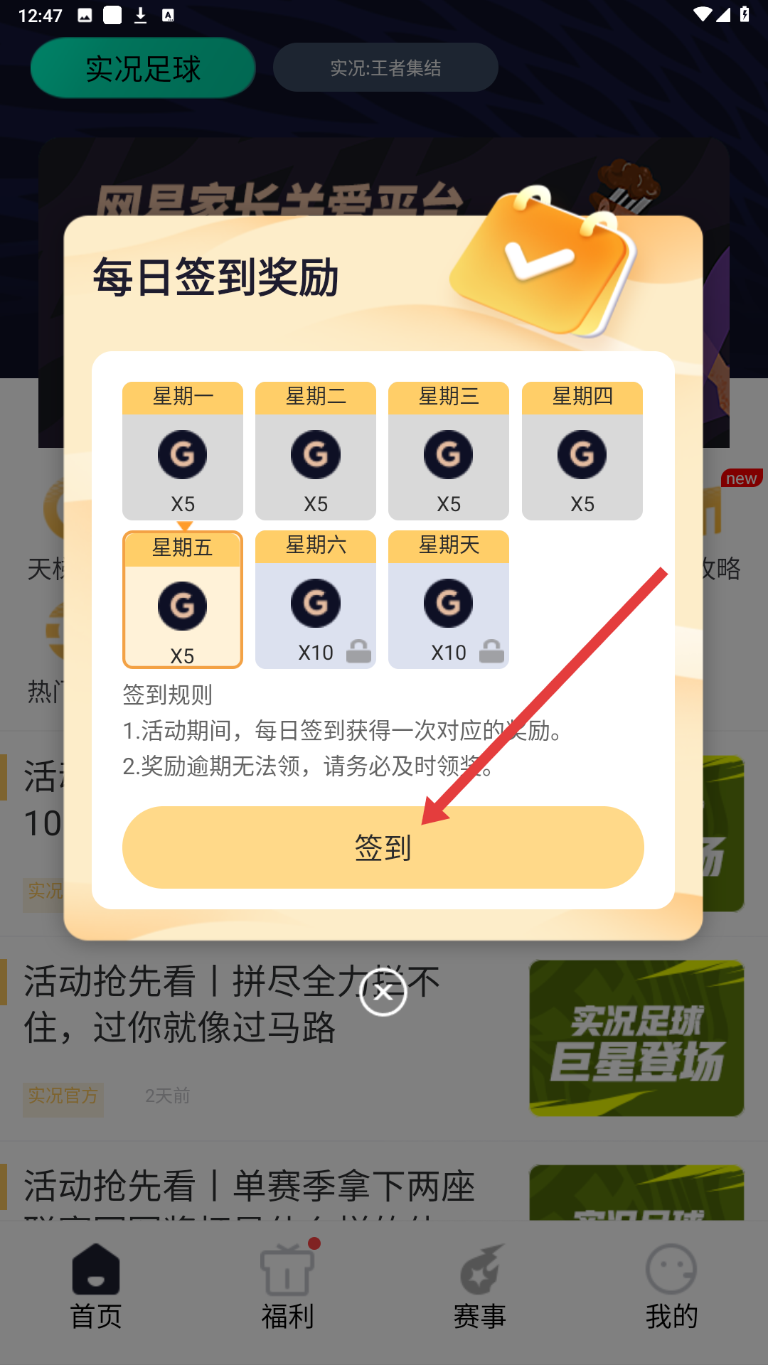 3、登錄后可參與每日簽到獎勵活動,根據簽到日期獲得對應的獎勵,需及時領取,逾期無法領取。