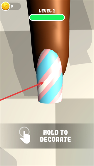 3、根據提示,長按屏幕加速為指甲添加裝飾圖案,讓美甲更具個性和美觀度。