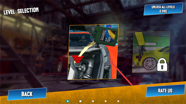 3、來到關卡選擇界面,選擇顯示有給汽車添加機油畫面且未上鎖的關卡,點擊即可進入該關卡進行修車操作。