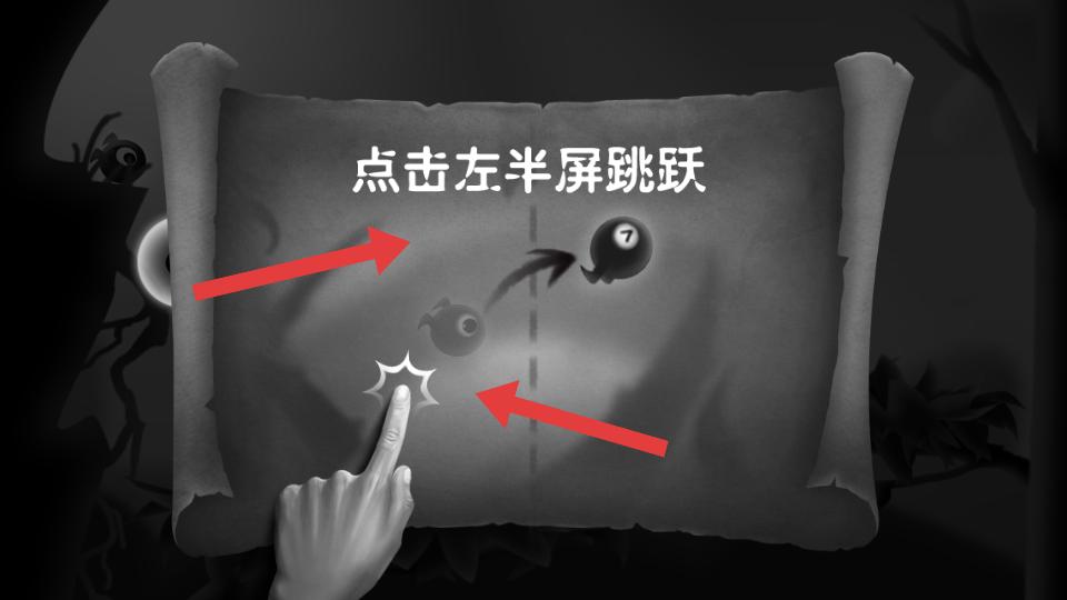 3、游戲有操作提示,點擊左半屏可讓角色跳躍,需牢記操作方式,以便在關卡里靈活操控角色行動。