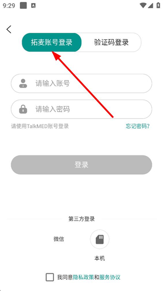 3、登錄頁面可選擇拓麥賬號登錄或驗證碼登錄,輸入賬號密碼或通過驗證碼即可登錄,也可選擇微信、本機等第三方登錄方式。