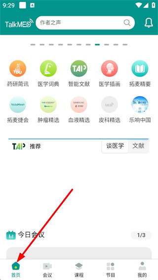 1、進入首頁可看到藥研簡訊、醫學詞典、智能文獻等多個功能入口,還有TAIP推薦的資訊內容,可根據需求選擇功能或瀏覽資訊。