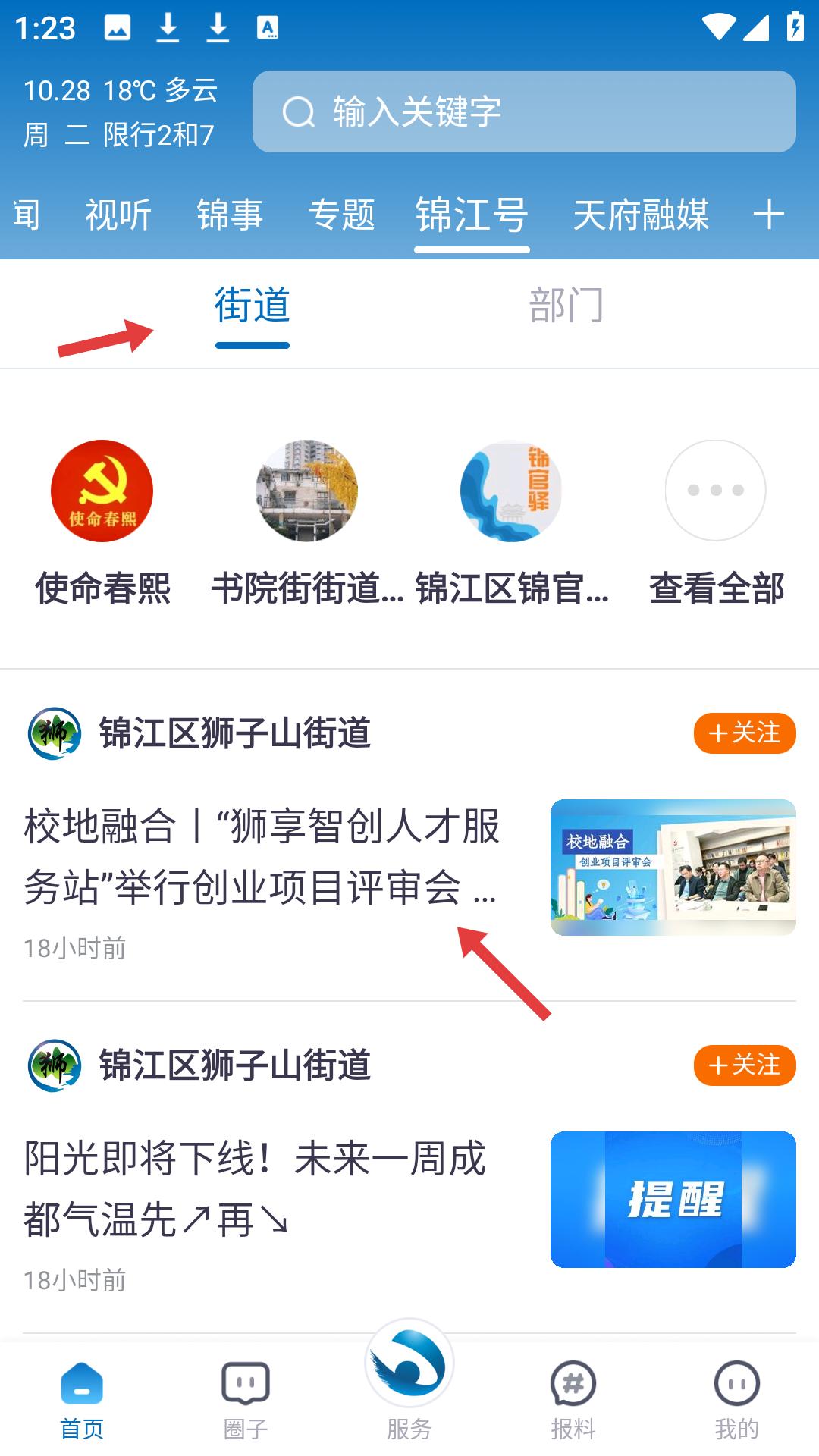 1、在首頁可切換街道,部門等標簽,查看對應板塊的資訊,點擊資訊可進入詳情頁,了解資訊的具體內容。