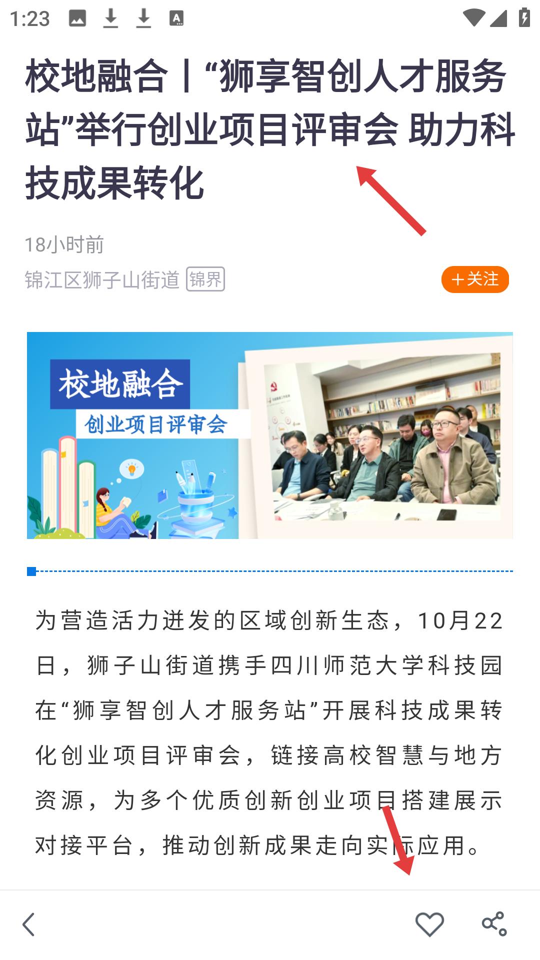 2、進入資訊詳情頁,可閱讀資訊的詳細內容,還能進行點贊,分享等操作,與他人互動交流。