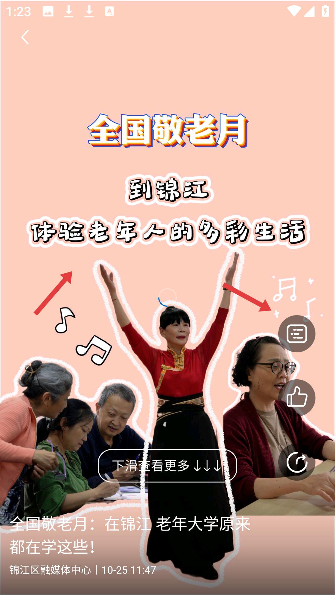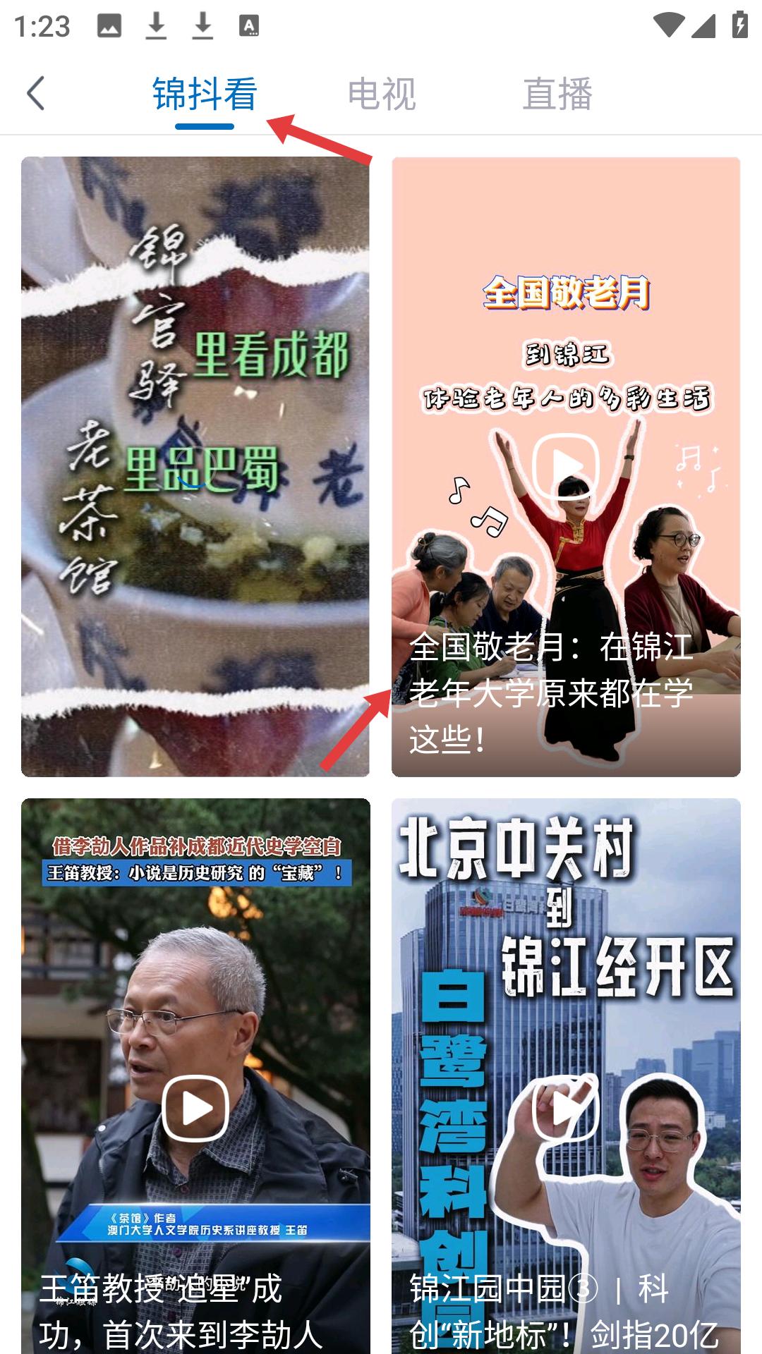 3、進入錦抖看頁面,瀏覽各類短視頻內容,點擊視頻可進入播放頁面,觀看視頻了解錦江動態。