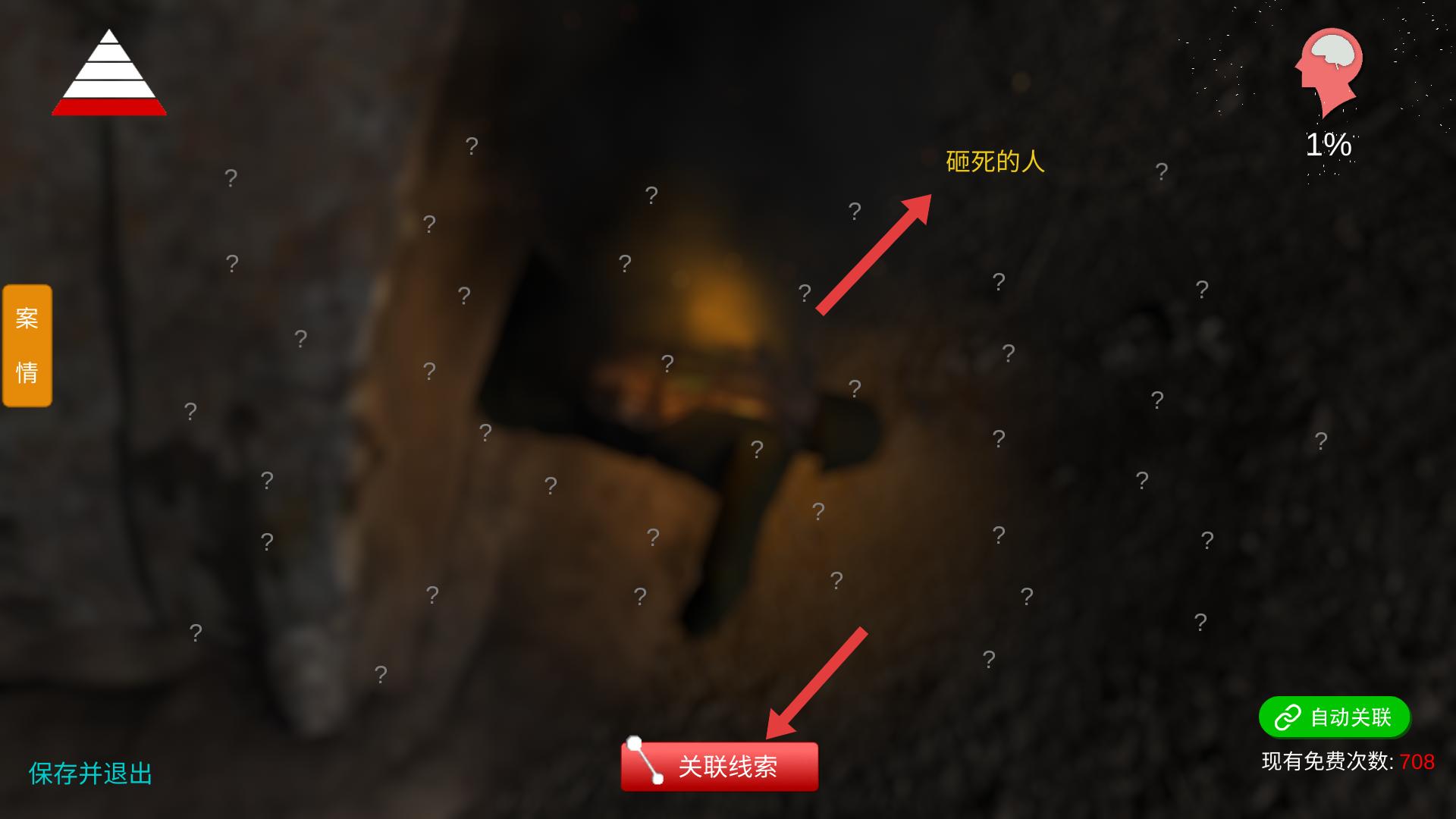 4、獲取砸死的人線索后,進入線索界面,能看到該線索,此時點擊下方的關聯線索按鈕,可嘗試將相關線索進行關聯分析。