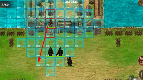 4、戰場是方格布局,可操控武將在方格上移動,通過策略性走位來與敵方部隊交戰,推進戰斗進程。