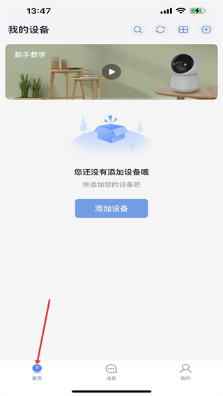 2、在首頁中點擊添加設備,開啟連接監控設備、遠程查看畫面的第一步,無論是新購入的監控設備,還是后續需要新增的監控點位,都能通過這一操作輕松完成添加。