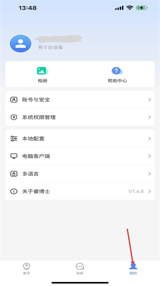 2、我的頁,含相冊、幫助中心,可管理賬號安全等,顯示APP版本,是個人中心功能設置區域。