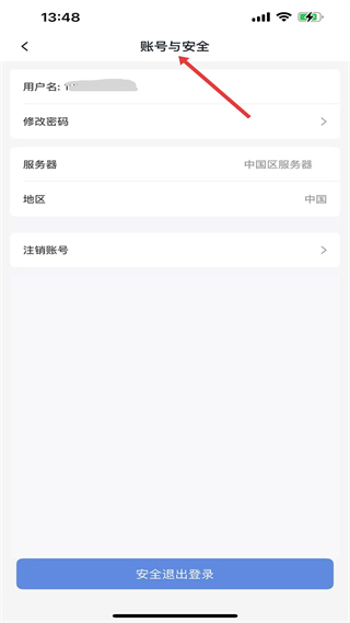 4、賬號與安全頁,可修改密碼、查看服務器地區,支持注銷賬號,有安全退出功能,是賬號安全管理核心區。