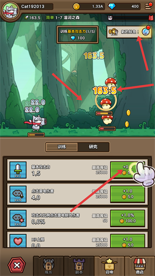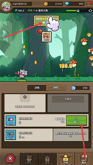 4、可點擊界面領取獎勵,同時能在商店消耗資源提升屬性,不斷增強貓咪騎士的戰力以應對冒險。