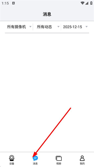 4、點擊底部導航欄的消息選項進入消息頁面,可通過所有攝像機所有動態日期等篩選條件,查看對應設備的消息內容,管理設備相關的通知信息。