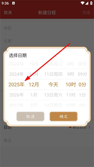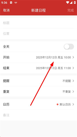3、展開展示更多后,新建日程界面出現位置、全天開關、開始及結束時間等設置項,可根據需求調整日程的各項信息內容。