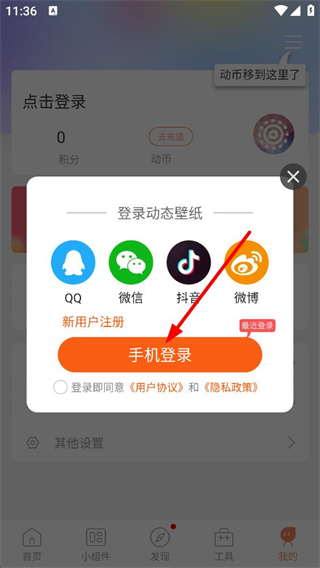 3、觸發登錄彈窗后,可選擇QQ微信等第三方登錄方式,也能點擊手機登錄選項,進入對應的手機登錄操作頁面。